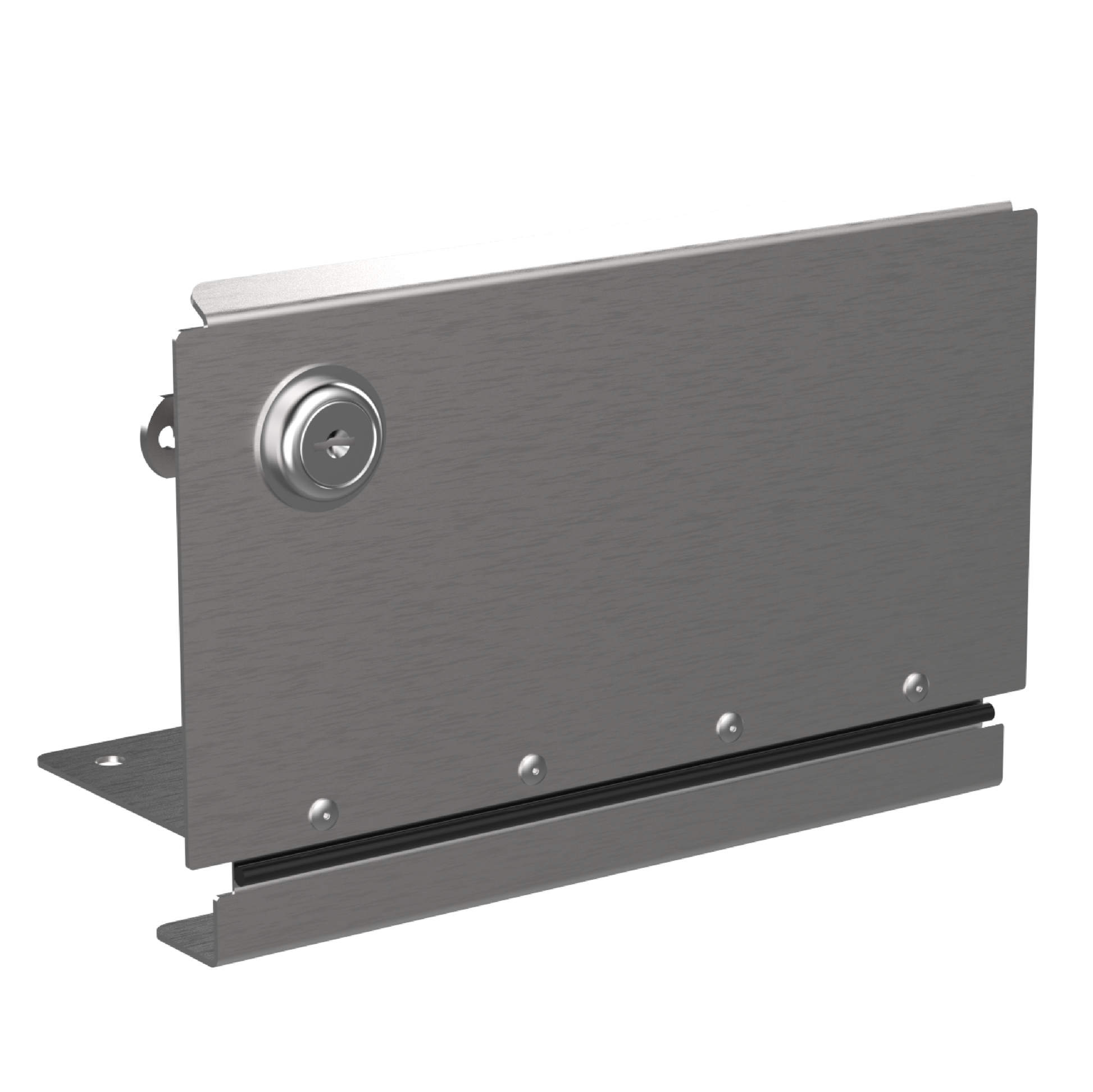 The locking door add-on can be installed before or after your mailbox and post have been installed. Slide the locking door bottom into the mailbox and attach the included bolts and nuts through the holes closest to the front of the mailbox.